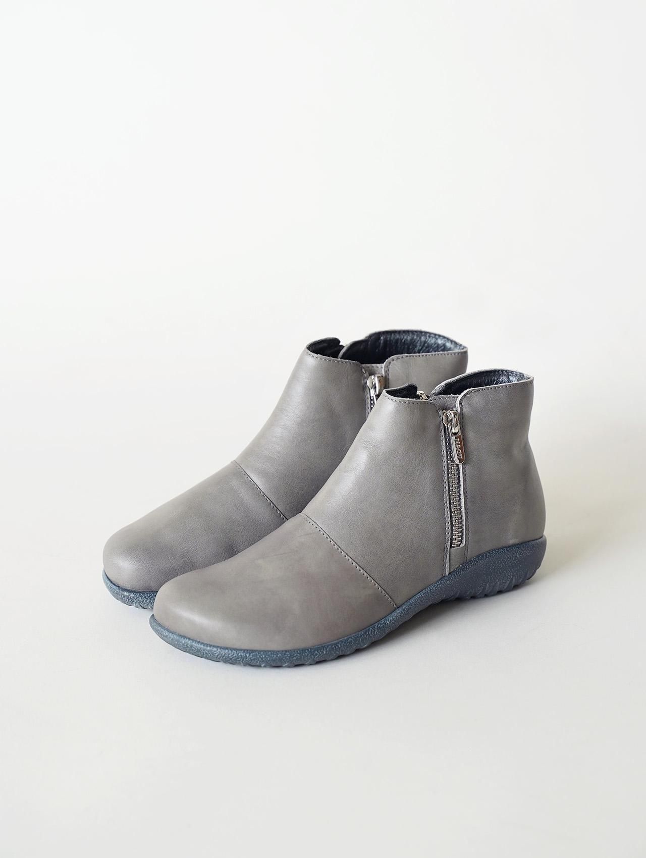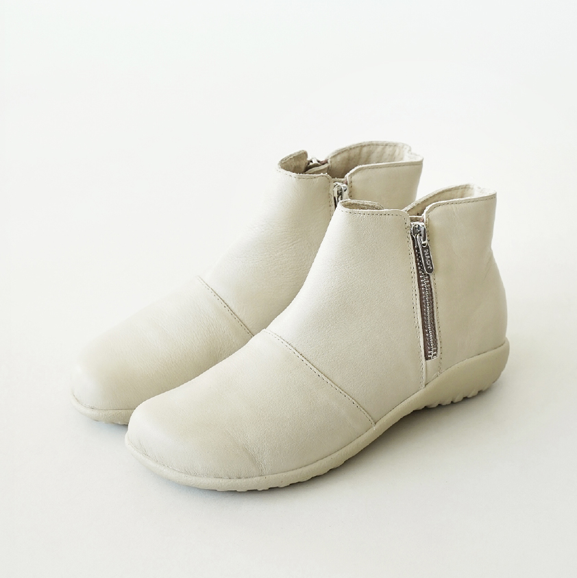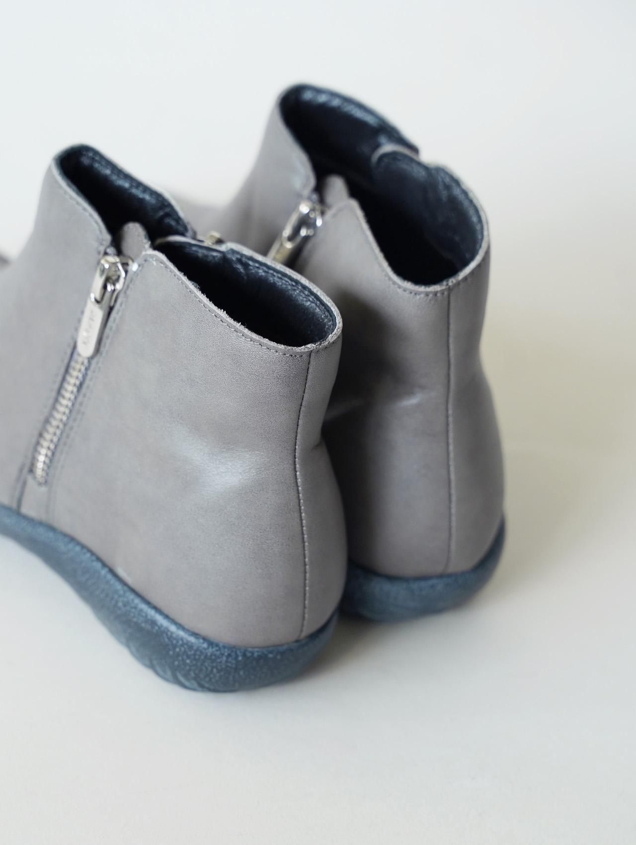 足にピッタリと寄り添うフィット感が魅力のショートブーツ。ダブルジップ仕様で、着脱も簡単です。シンプルなデザインなので合わせやすく、軽い履き心地でたくさん歩ける一足。