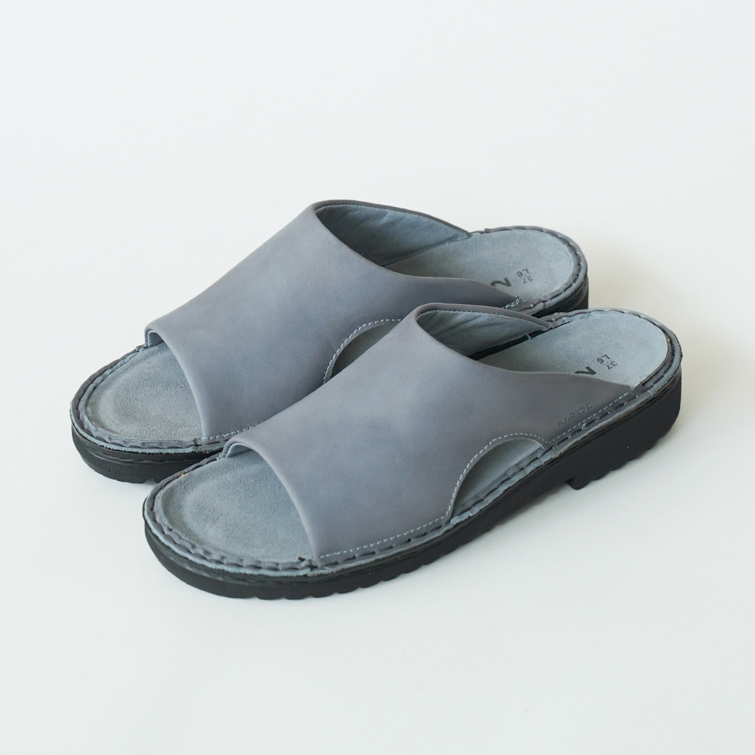 脱ぎ履きスムーズなデザインながら、安定感のある履き心地が魅力のスライドサンダル。革の内側にはクッションがあり、甲周りを優しくしっかり包んでくれます。素足はもちろん靴下とも相性抜群なので、春から秋まで活躍します。